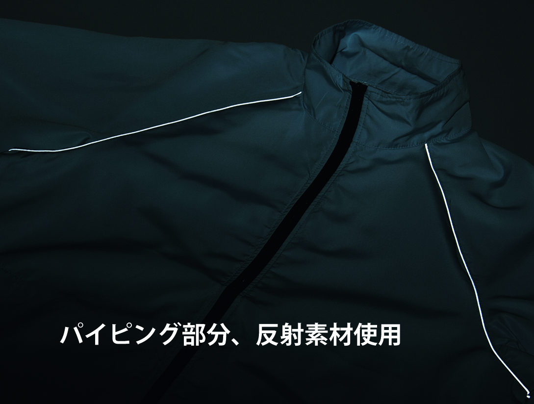 多彩な機能を搭載したアクティブモデル。パイピング部分に反射材を使用。蒸れにくい透湿撥水性。