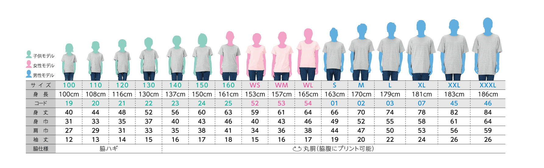 サイズはキッズからレディース、XXLまで計16種。レディースは襟口が広がったスリムでおしゃれなフォルムです。Tシャツで迷ったらこれにしておけば間違い無いです。